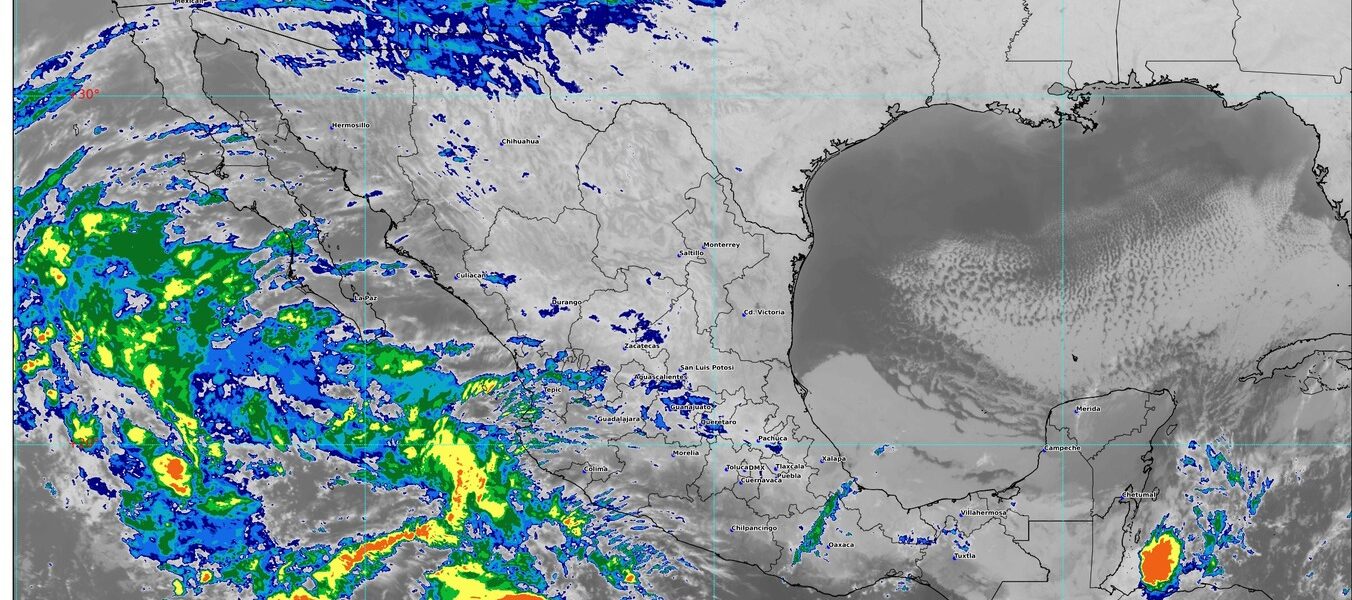 A su vez, el ingreso de humedad del océano Pacífico originará lluvias y chubascos en estados del noroeste, occidente, centro y sur de la República Mexicana.
