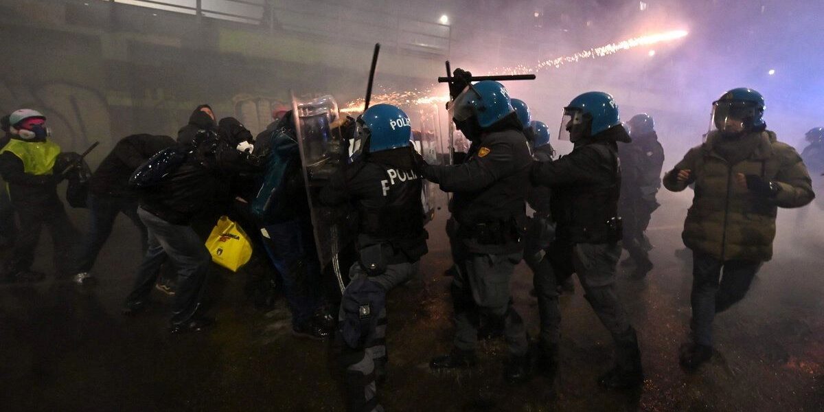 El enfrentamiento ocurrió al término de una marcha pacífica de miles de personas que protestaban por el impacto ambiental del certamen y por la presencia de agentes del Servicio de Inmigración y Control de Aduanas de Estados Unidos en Italia.