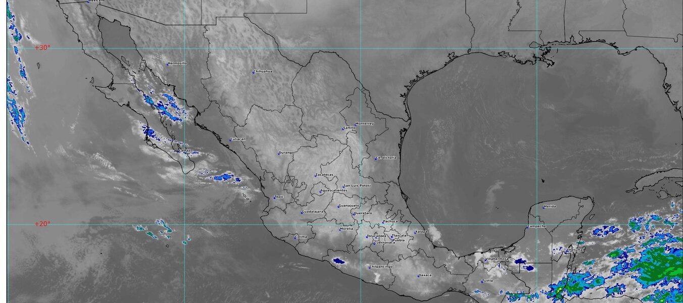 Canales de baja presión y el ingreso de humedad del océano Pacífico, golfo de México y mar Caribe, propiciarán chubascos y lluvias puntuales fuertes con posibles descargas eléctricas en dicha región, incluida la península de Yucatán, pronosticándose lluvias puntuales muy fuertes en zonas de Chiapas.