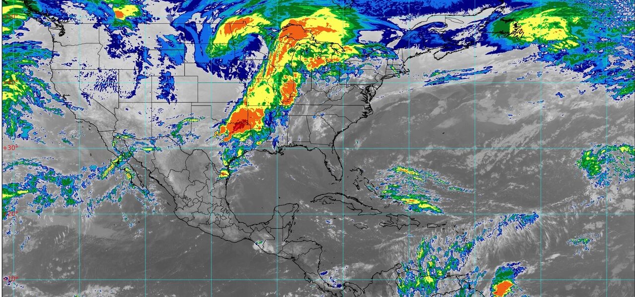 En el norte y noreste de México se esperan lluvias puntuales muy fuertes en Coahuila, Nuevo León y Tamaulipas, así como lluvias fuertes en Chihuahua y San Luis Potosí. Estas precipitaciones estarán acompañadas de descargas eléctricas y posibles granizadas, además de vientos intensos que podrían propiciar la formación de torbellinos o incluso tornados en entidades como Chihuahua, Coahuila, Nuevo León y Tamaulipas.
