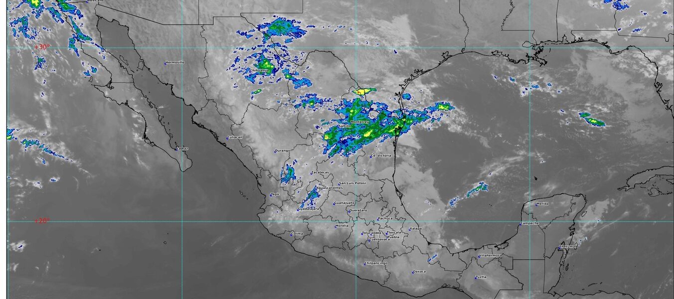 #NACIONAL🇲🇽 II El Servicio Meteorológico Nacional informa que este día, una vaguada en altura se desplazará sobre el norte y noreste de la República Mexicana; en interacción con inestabilidad atmosférica ocasionará chubascos y lluvias fuertes a muy fuertes y rachas de viento en ambas regiones.