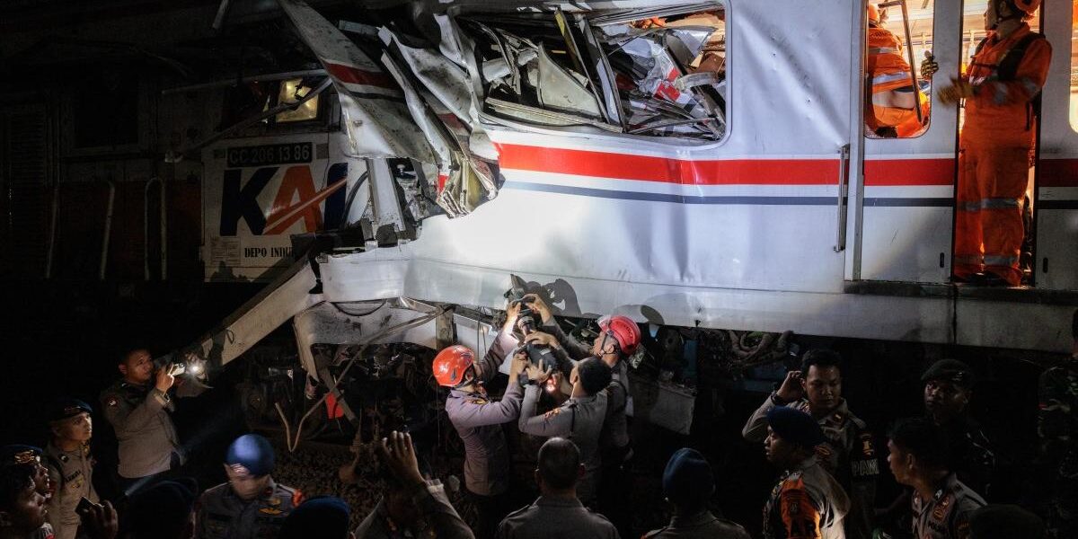 El accidente se produjo la noche del lunes cerca de la estación de Bekasi Timur, a 25 km de Yakarta, cuando un tren de larga distancia colisionó contra uno de cercanías que estaba detenido en la vía.