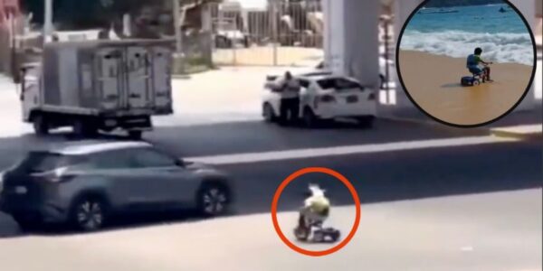 Niño de 8 años cruza en triciclo uno de los cruceros más peligrosos de Acapulco
